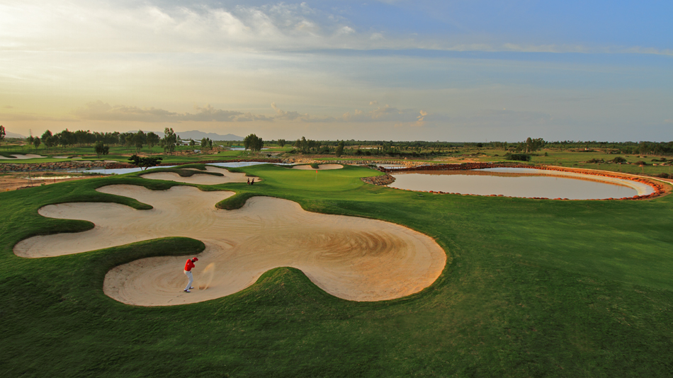 The project began in 2008 when Confident Group contacted Golfplan to build an 18-hole golf course that would be complemented by a villa community. Initially, the design was a collaboration between Ron Fream, Kevin Ramsey and George Philpott. “We worked together to create a visually appealing and fun, yet very challenging golf course,” said Philpott. “The design utilised large sprawling bunkering, rolling greens with multiple pinnable locations, strategically placed lakes and undulating fairways narrowing at long landing areas.”